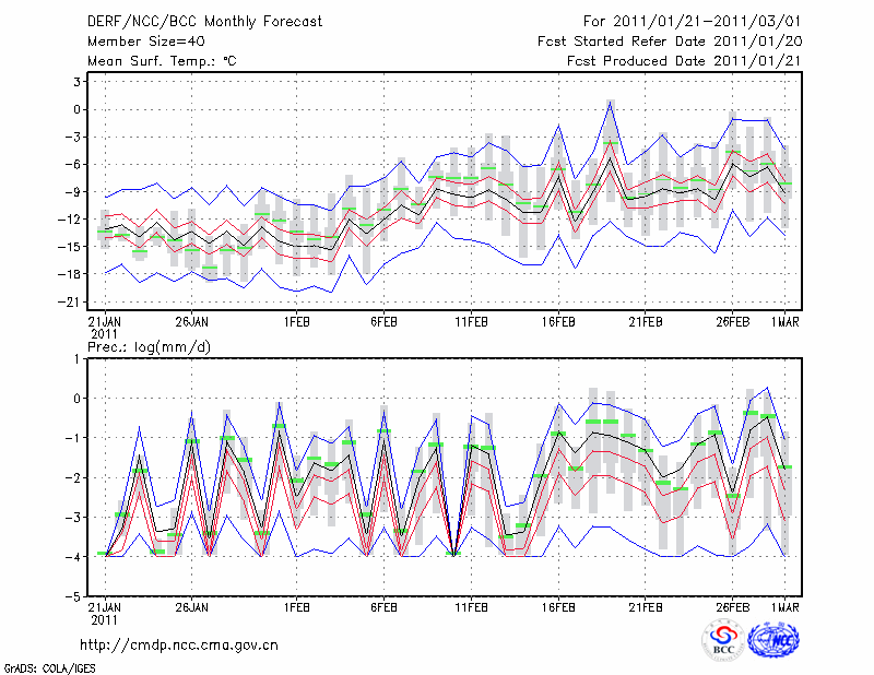 林 东 (LAT:43.98 LON:119.40) 2011-01-21        预测