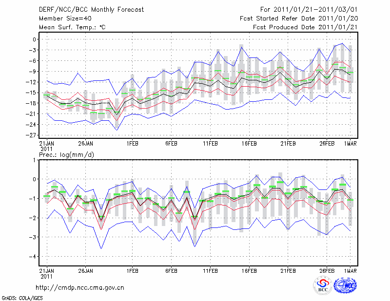 牡 丹 江 (LAT:44.57 LON:129.60) 2011-01-21        预测