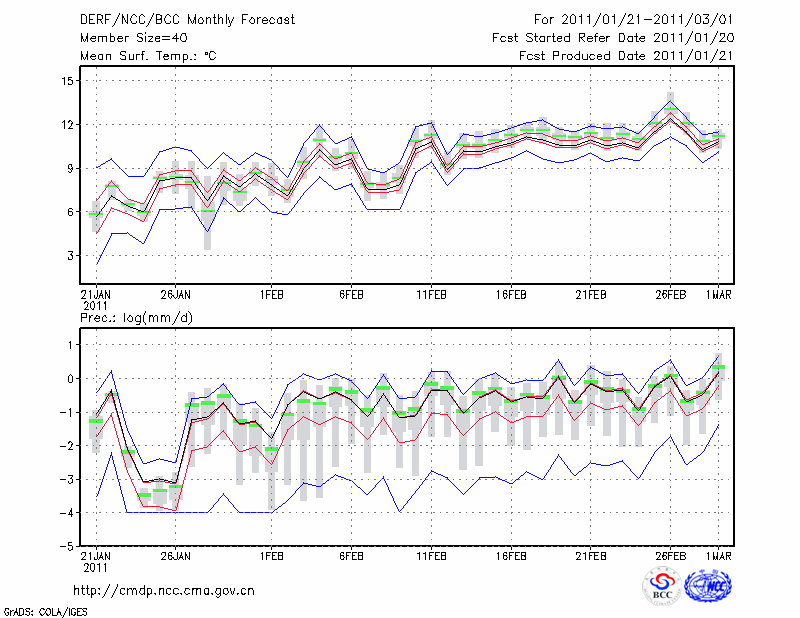 丽 江 (LAT:26.83 LON:100.47) 2011-01-21        预测