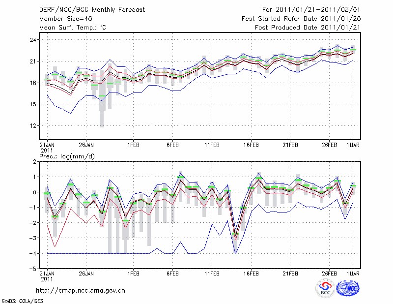 景 洪 (LAT:22.02 LON:100.80) 2011-01-21        预测
