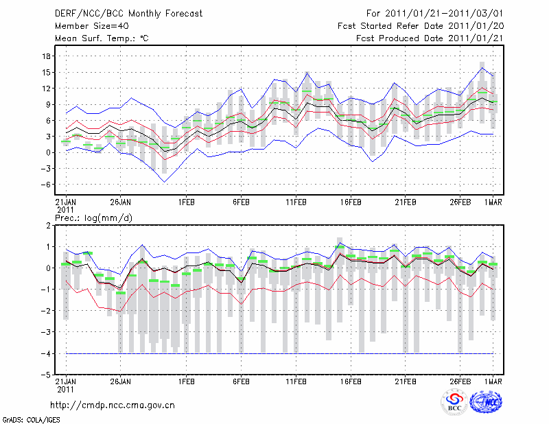钟 祥 (LAT:31.17 LON:112.57) 2011-01-21        预测
