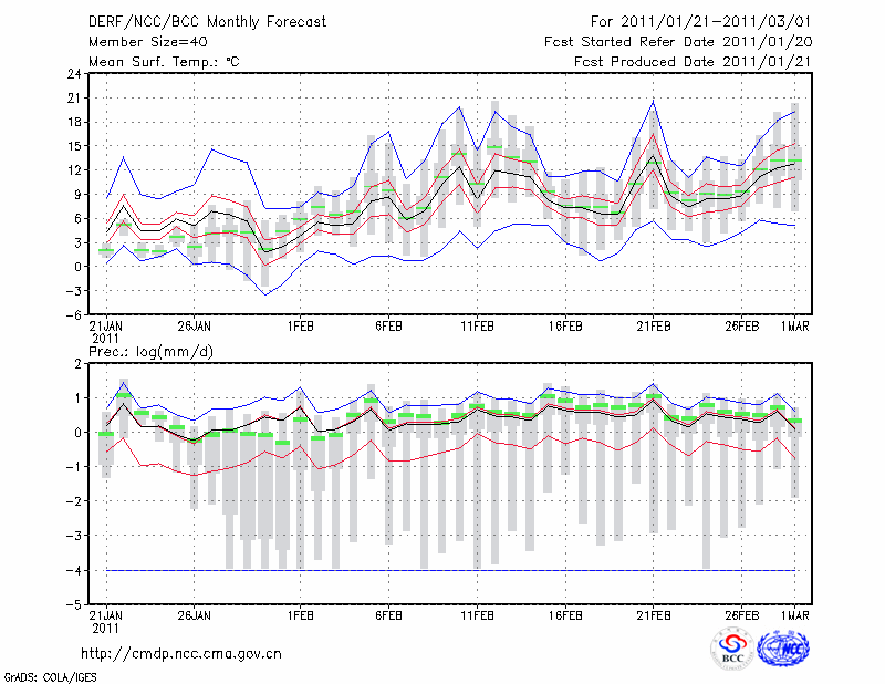 岳 阳 (LAT:29.38 LON:113.08) 2011-01-21        预测