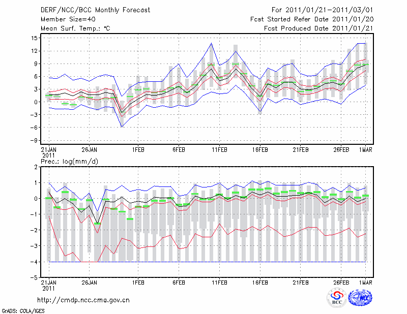东 台 (LAT:32.87 LON:120.32) 2011-01-21        预测