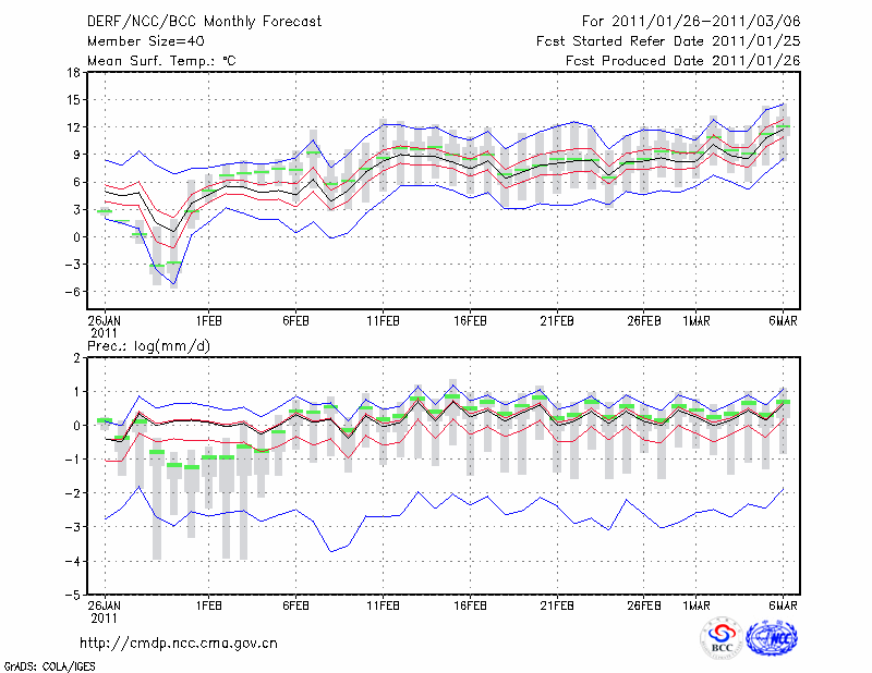 恩 施 (LAT:30.28 LON:109.47) 2011-01-26        预测