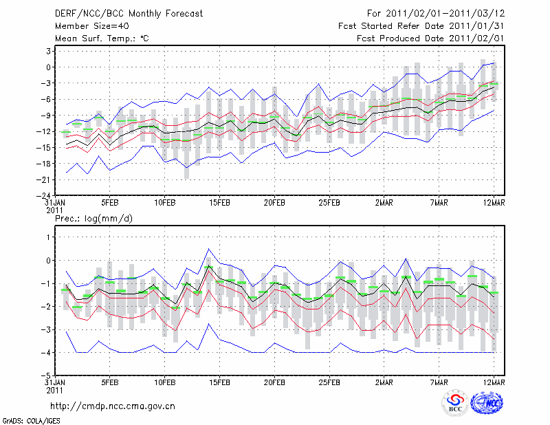 乌兰浩特 (LAT:46.08 LON:122.05) 2011-02-01        预测