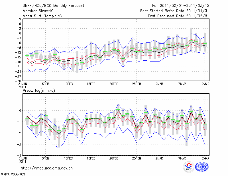 佳 木 斯 (LAT:46.49 LON:130.17) 2011-02-01        预测