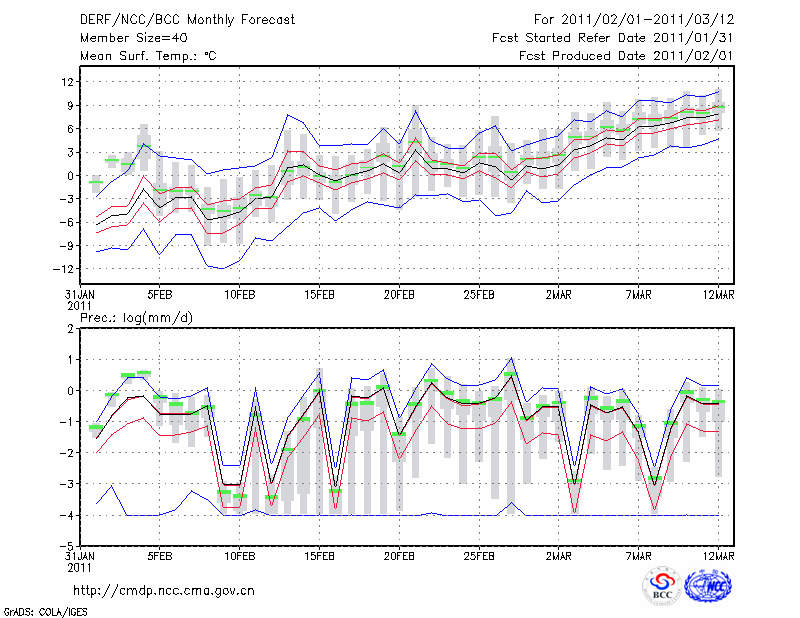 喀 什 (LAT:39.47 LON:75.98) 2011-02-01        预测