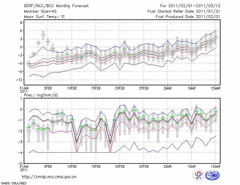 西 宁 (LAT:36.62 LON:101.77) 2011-02-01        预测