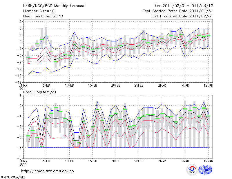 银 川 (LAT:38.48 LON:106.22) 2011-02-01        预测