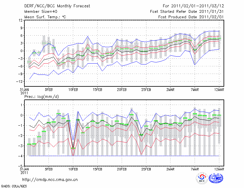 延 安 (LAT:36.60 LON:109.50) 2011-02-01        预测