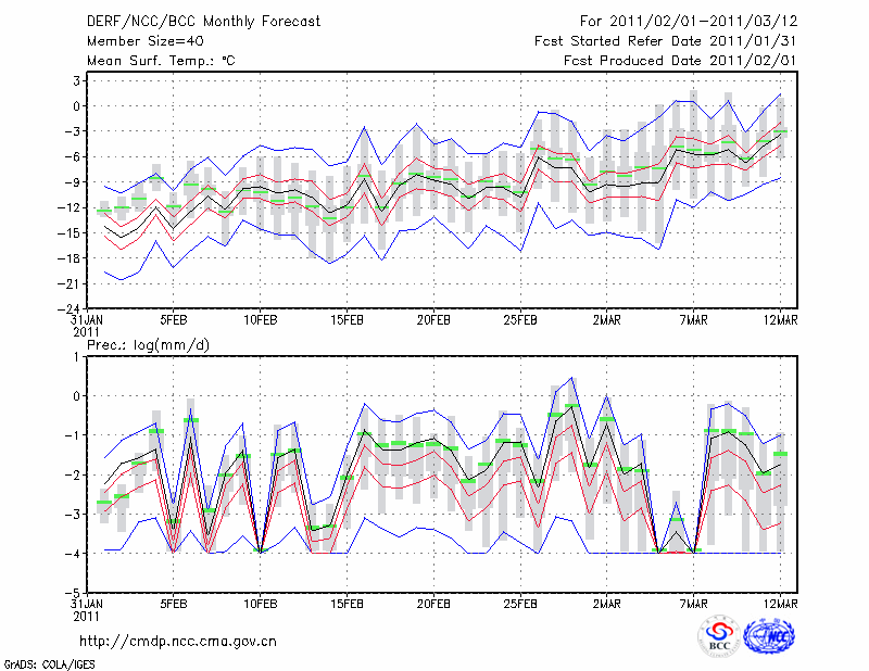 林 东 (LAT:43.98 LON:119.40) 2011-02-01        预测