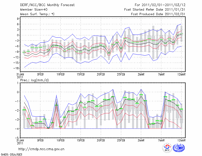 赤 峰 (LAT:42.27 LON:118.97) 2011-02-01        预测