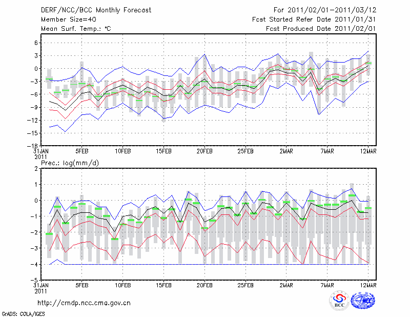 丹 东 (LAT:40.05 LON:124.33) 2011-02-01        预测