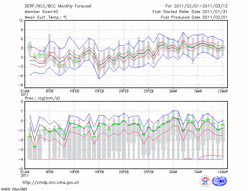 青 岛 (LAT:36.07 LON:120.33) 2011-02-01        预测