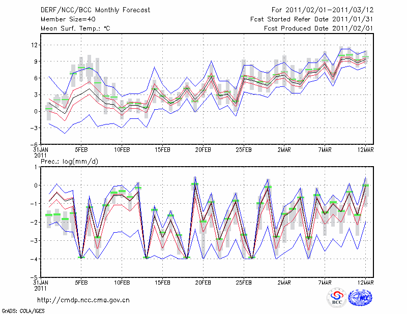 拉 萨 (LAT:29.67 LON:91.13) 2011-02-01        预测