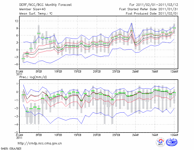 康 定 (LAT:30.05 LON:101.97) 2011-02-01        预测