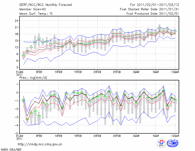 西 昌 (LAT:27.90 LON:102.27) 2011-02-01        预测