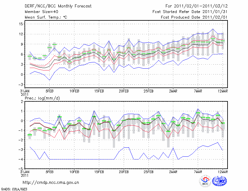 汉 中 (LAT:33.07 LON:107.03) 2011-02-01        预测