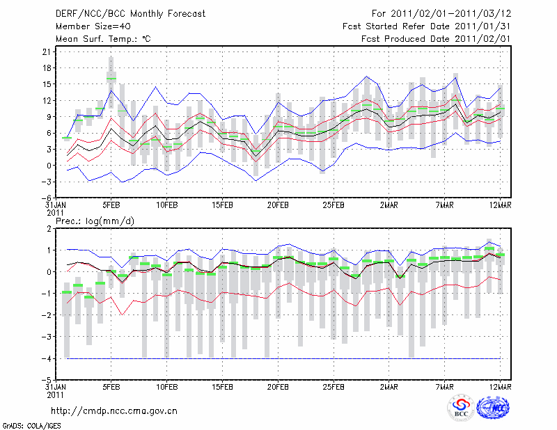 信 阳 (LAT:32.13 LON:114.05) 2011-02-01        预测