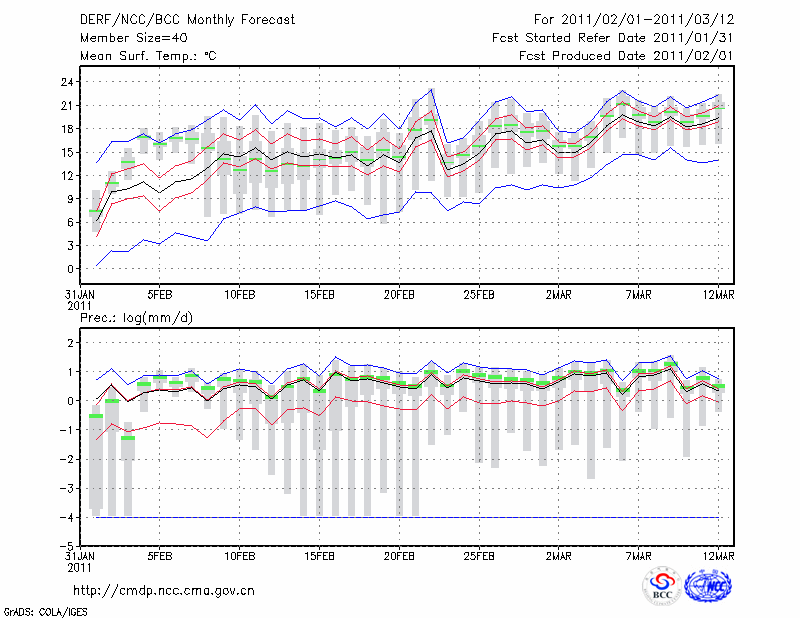 赣 州 (LAT:25.85 LON:114.95) 2011-02-01        预测