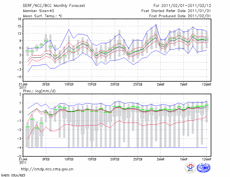 南 京 (LAT:32.00 LON:118.80) 2011-02-01        预测