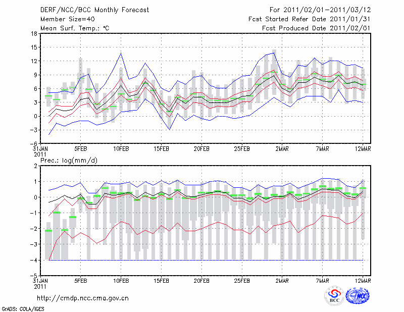 东 台 (LAT:32.87 LON:120.32) 2011-02-01        预测