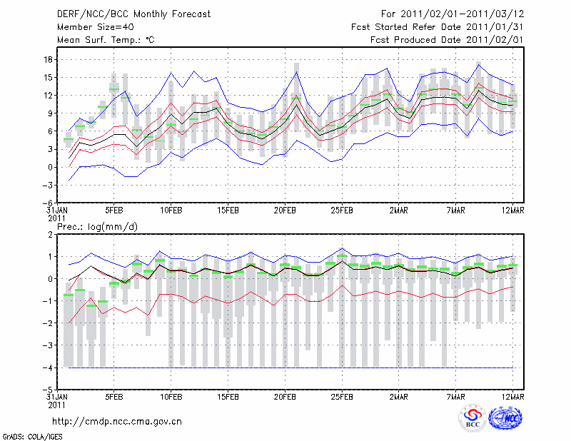 安 庆 (LAT:30.53 LON:117.05) 2011-02-01        预测