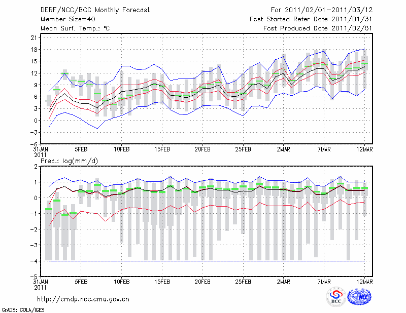 屯 溪 (LAT:29.71 LON:118.28) 2011-02-01        预测