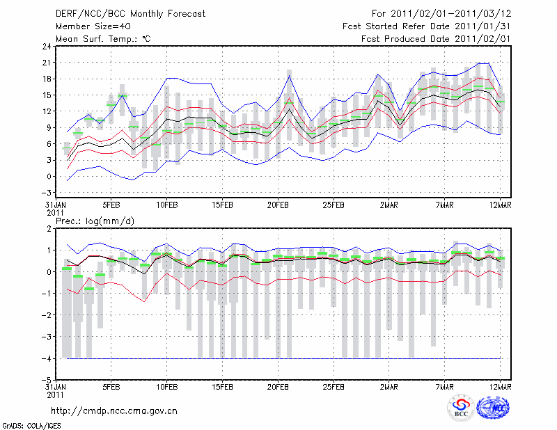 南 昌 (LAT:28.60 LON:115.92) 2011-02-01        预测