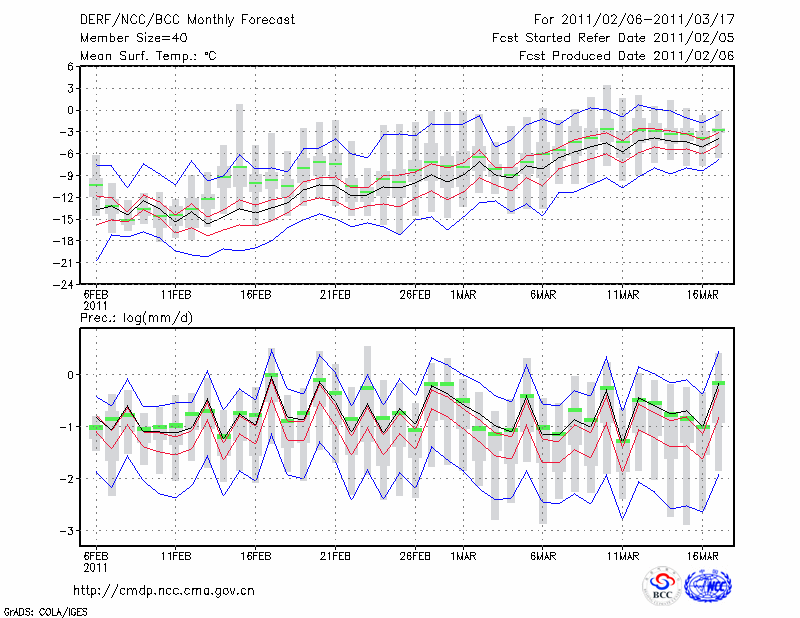 鸡 西 (LAT:45.28 LON:130.95) 2011-02-06        预测