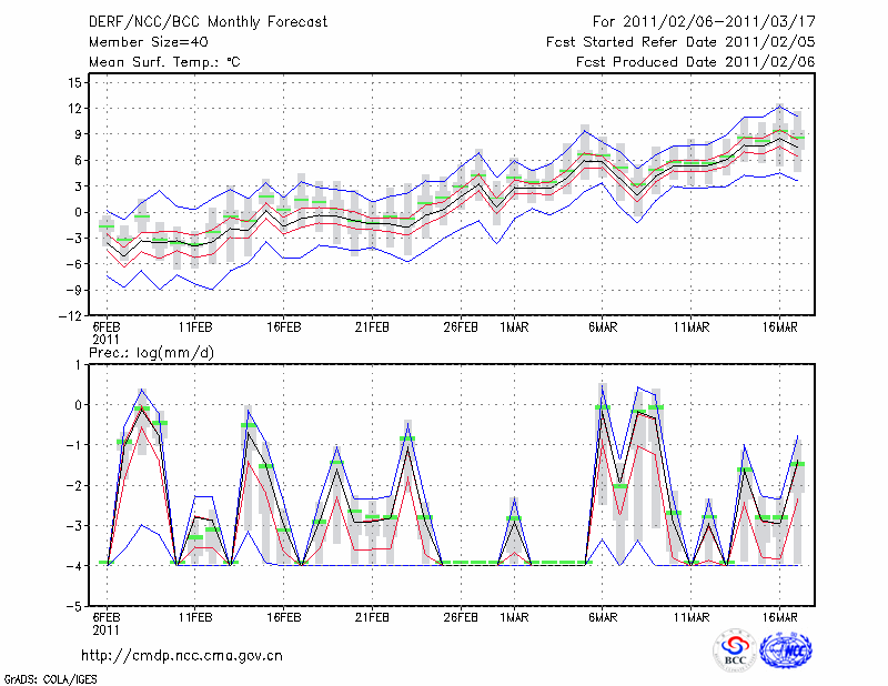 若 羌 (LAT:39.03 LON:88.17) 2011-02-06        预测