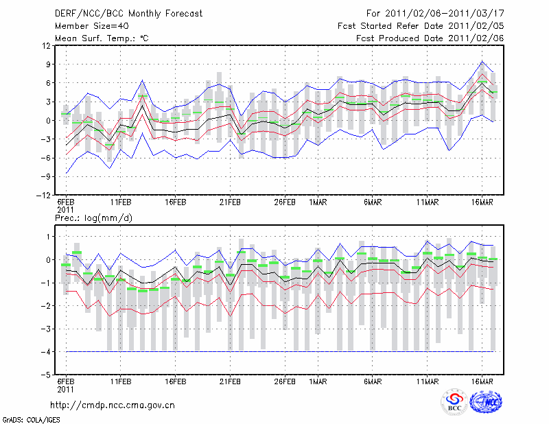 西 峰 镇 (LAT:35.73 LON:107.63) 2011-02-06        预测