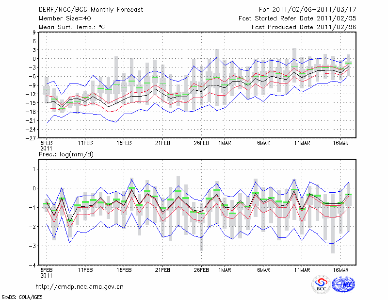 牡 丹 江 (LAT:44.57 LON:129.60) 2011-02-06        预测