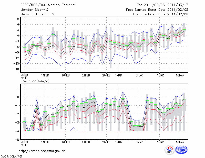 赤 峰 (LAT:42.27 LON:118.97) 2011-02-06        预测