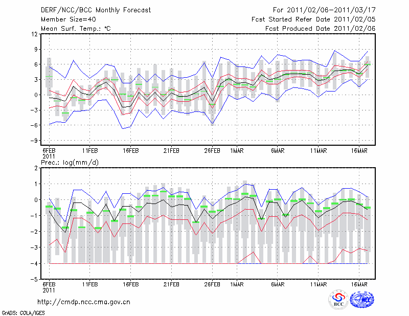 青 岛 (LAT:36.07 LON:120.33) 2011-02-06        预测