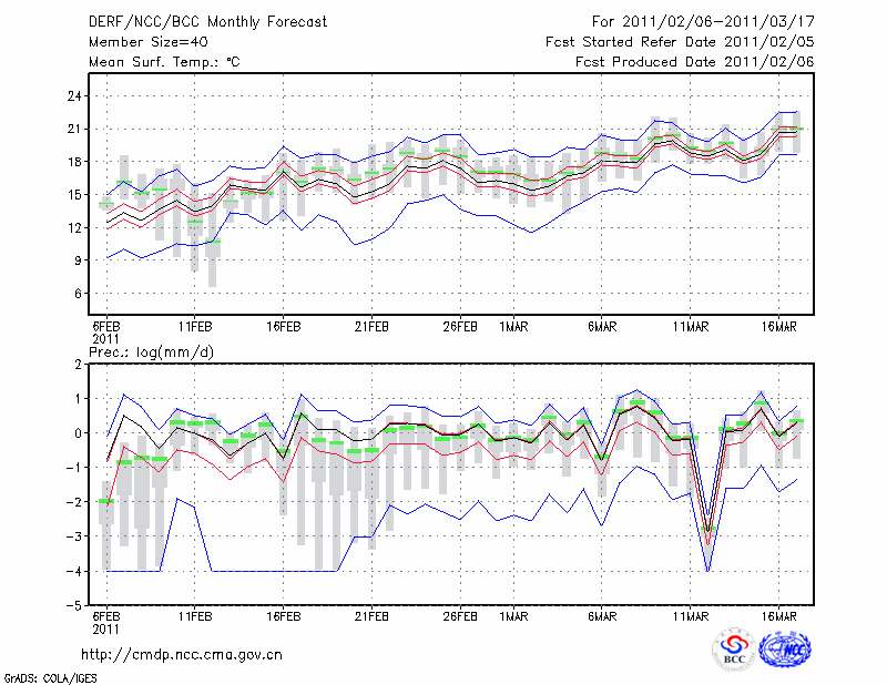 蒙 自 (LAT:23.38 LON:103.38) 2011-02-06        预测