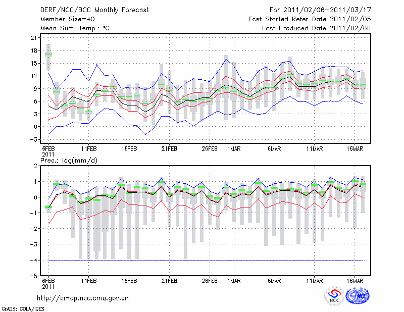钟 祥 (LAT:31.17 LON:112.57) 2011-02-06        预测