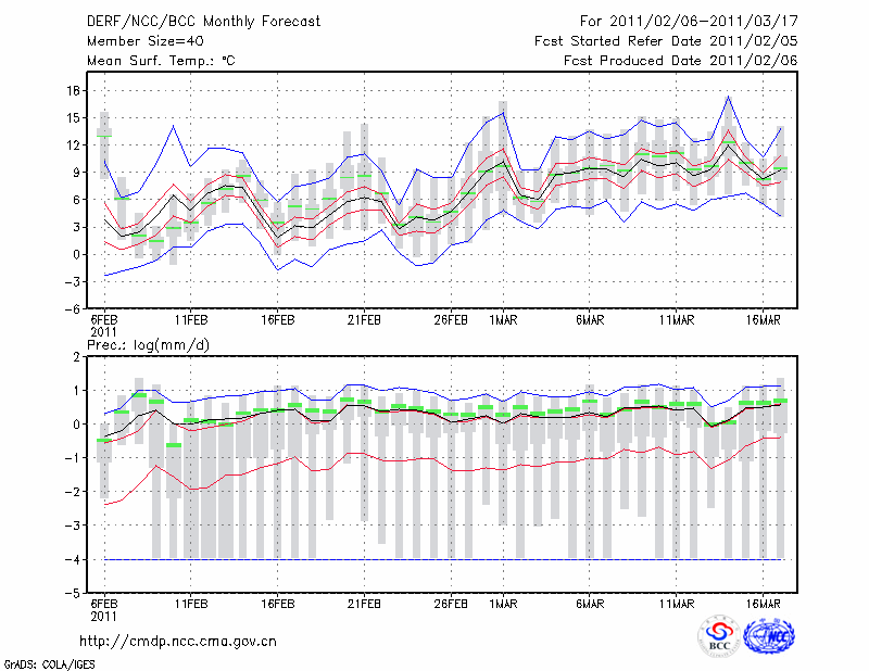 南 京 (LAT:32.00 LON:118.80) 2011-02-06        预测