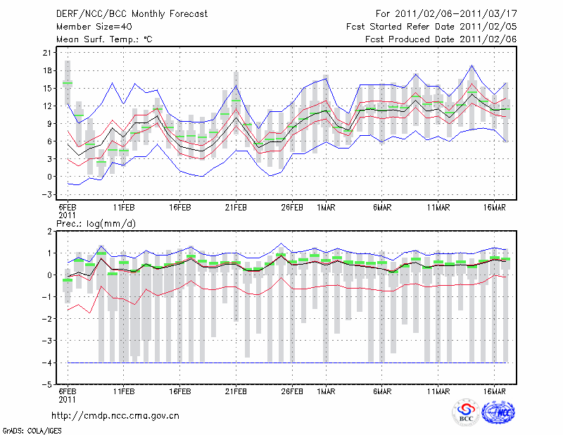 安 庆 (LAT:30.53 LON:117.05) 2011-02-06        预测