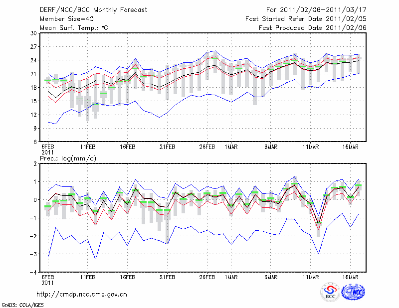 百 色 (LAT:23.90 LON:106.60) 2011-02-06        预测