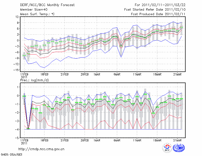 榆 林 (LAT:38.23 LON:109.70) 2011-02-11        预测