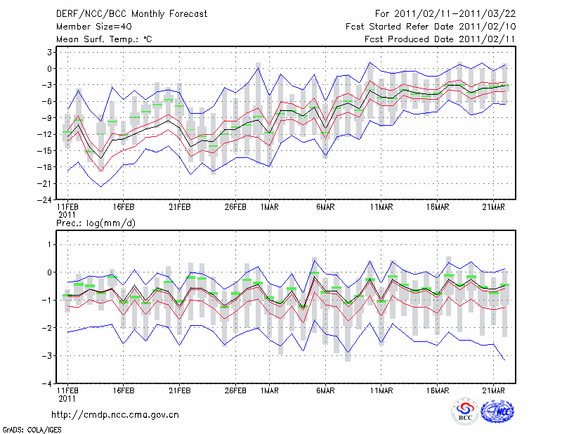 牡 丹 江 (LAT:44.57 LON:129.60) 2011-02-11        预测