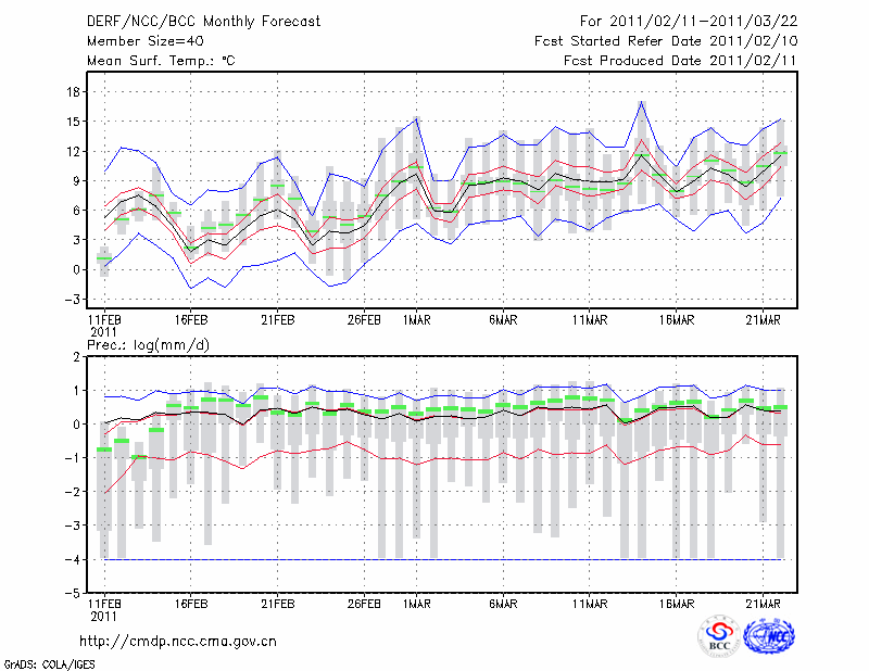 南 京 (LAT:32.00 LON:118.80) 2011-02-11        预测