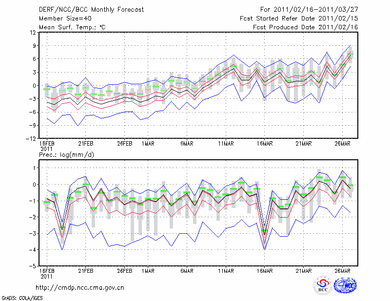 西 宁 (LAT:36.62 LON:101.77) 2011-02-16        预测