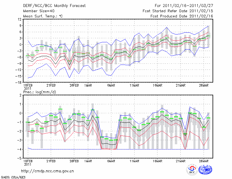 赤 峰 (LAT:42.27 LON:118.97) 2011-02-16        预测