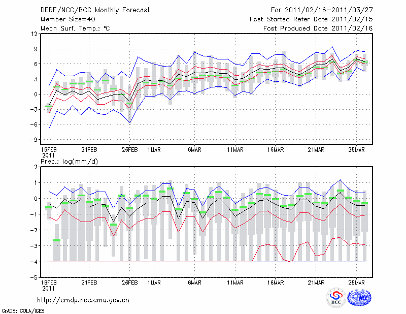 青 岛 (LAT:36.07 LON:120.33) 2011-02-16        预测