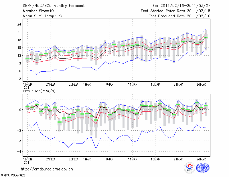 内 江 (LAT:29.58 LON:105.05) 2011-02-16        预测