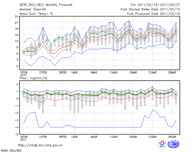 南 昌 (LAT:28.60 LON:115.92) 2011-02-16        预测