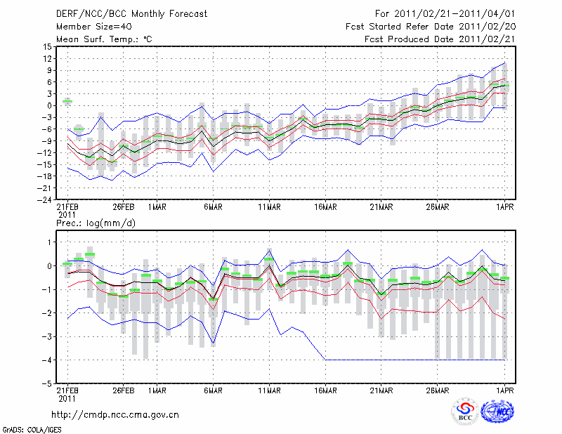 哈 尔 滨 (LAT:45.75 LON:126.77) 2011-02-21        预测