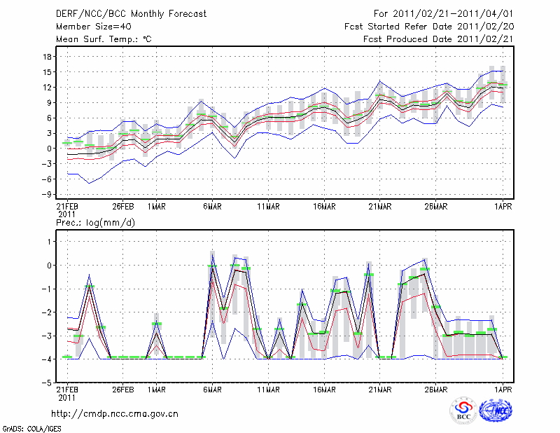 若 羌 (LAT:39.03 LON:88.17) 2011-02-21        预测